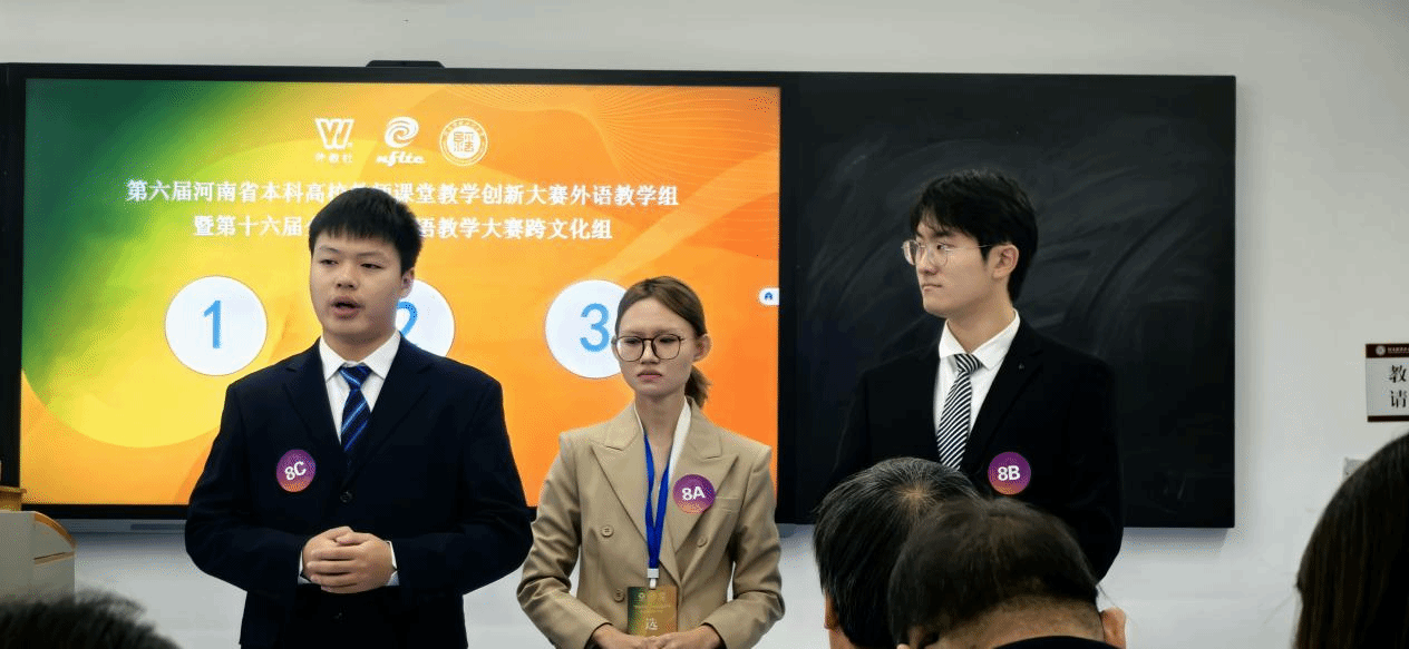 10月25、26日,第六届河南省本科高校教师课堂教学创新大赛外语教学组暨第十六届全国高校外语教学大赛河南省赛跨文化组圆满落幕。经过与其他31支参赛队伍的激烈角逐,我校参赛团队凭借扎实的跨文化知识、默契的团队协作与稳健的赛场表现,以总分第1名的优异成绩荣获河南省特等奖,成功晋级“外教社杯”全国高校学生跨文化能力大赛全国总决赛。